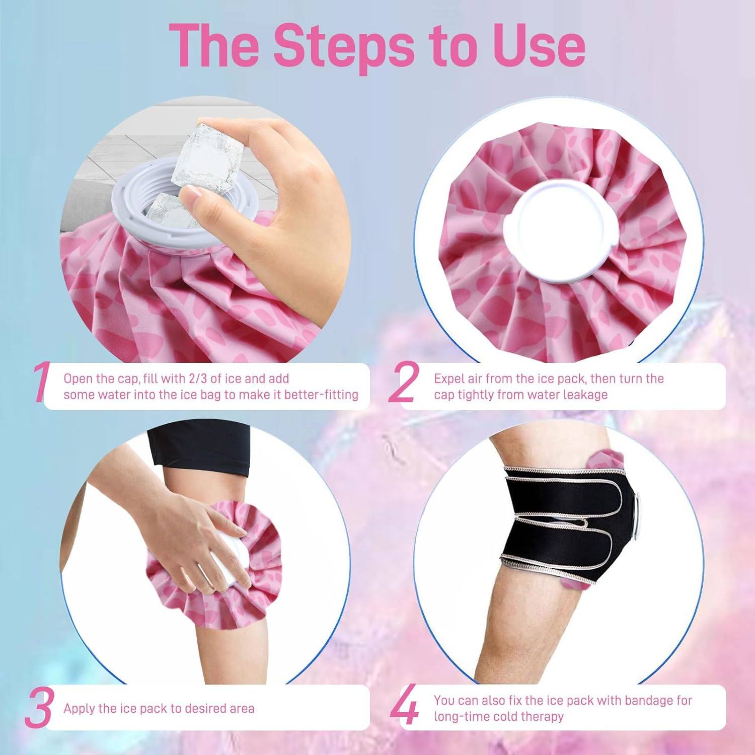 Ice Pack for Injuries Reusable, Ice Bag for Injuries Hot Water Bag for Hot & Cold Therapy, No-Leak Elastic Ice Bag with Elastic Breathable Support Wrap, 3 Sizes 6/9/11"-Intent